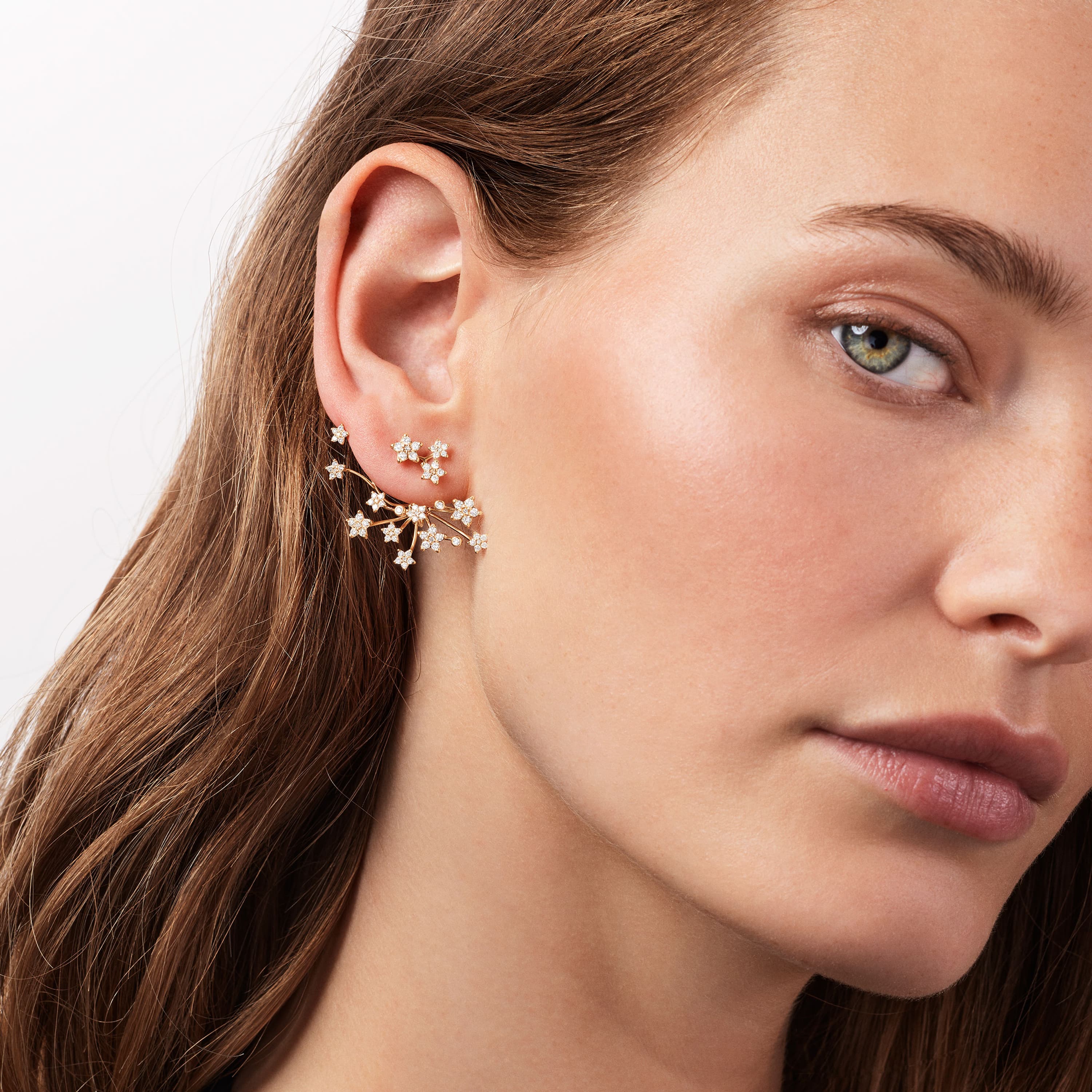 Dieser von Charlotte Lynggaard entworfenen Shooting Stars-Ohrringanhänger ist aus 750/- Gelbgold gefertigt und mit 63 Diamanten von insgesamt 0,45 Karat tw/vs besetzt. Das Design stellt einen Sternenhimmel dar. Jeder Stern ist mit sechs Diamanten im Brillantschliff besetzt, die von der Oberfläche abgehoben sind, um Licht durch die Facetten dringen zu lassen. Die Goldoberflächen werden von Goldschmiedemeistern handpoliert. Der Shooting Stars-Ohrringanhänger lässt sich hinter dem Ohrläppchen an einem Shooting Stars-Ohrstecker anbringen und kann mühelos an unterschiedlichen Ohrringen befestigt und wieder abgenommen werden. Der Anhänger ist sowohl in linker als auch in rechter Ausführung erhältlich. Als Einzelstück verkauft. Teil der Shooting Stars-Kollektion.
