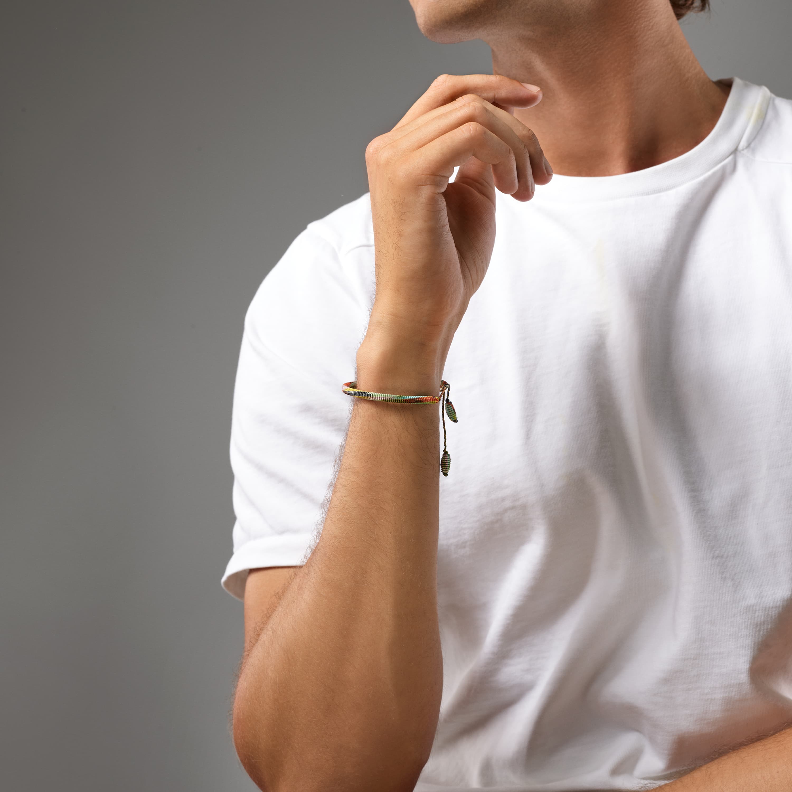 Designed by Charlotte Lynggaard, this Life bracelet in the colour Seaside is braided from nine hand-knotted strings, each crafted from six hand-dyed nylon threads, and finished with a subtle 18 karat gold tag. The design features an adjustable sliding knot, ensuring a comfortable fit, with the strings ending in sculpted details. One size. Part of The Life Collection.