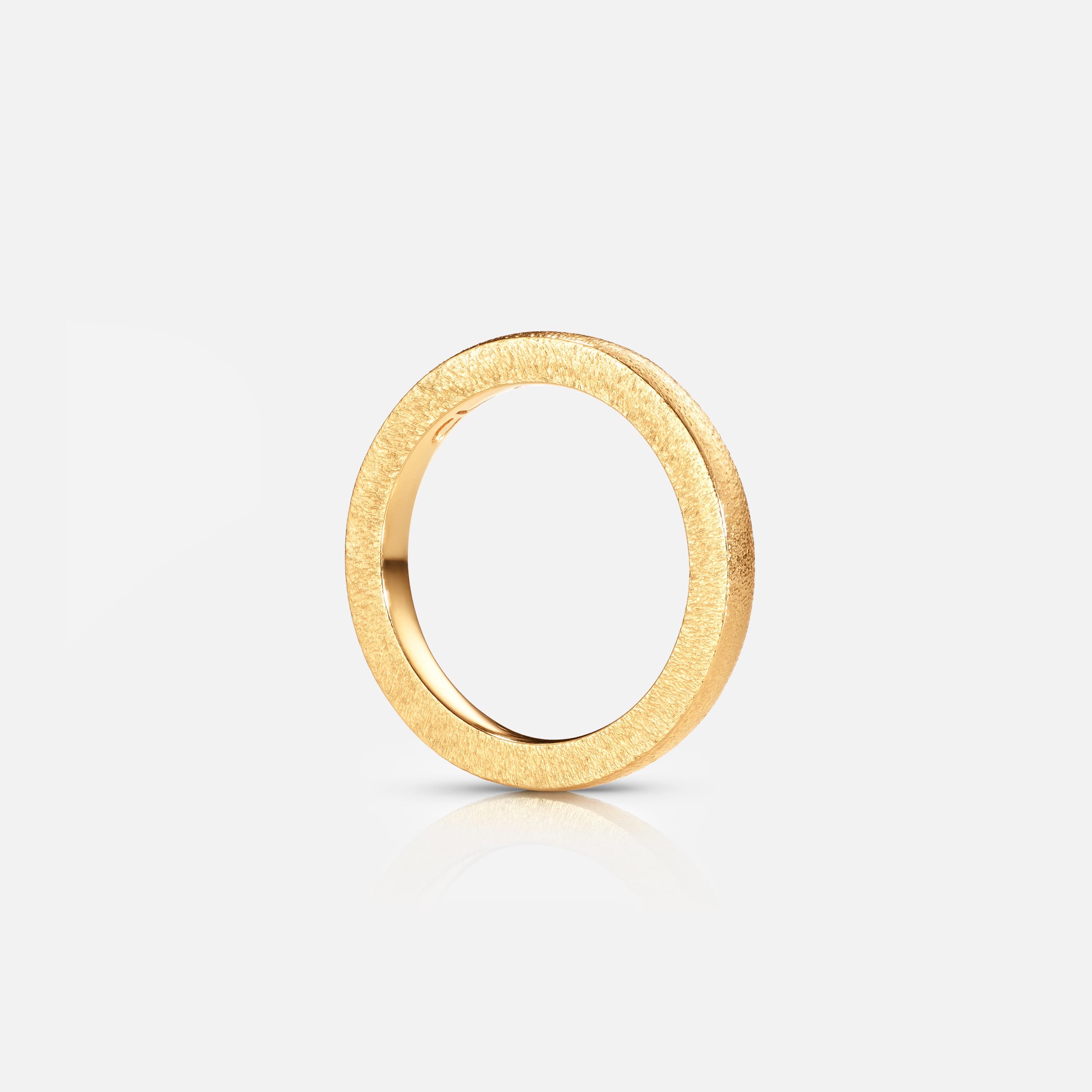 Imaginée par Charlotte Lynggaard, la bague Forever Love est réalisée en or jaune 18 carats. Les maîtres orfèvres martèlent les surfaces visibles de la bague à la main pour obtenir la finition texturée et polissent à la main l'intérieur de la bague. Fait partie de la Collection Engagement and Wedding de Ole Lynggaard Copenhagen.